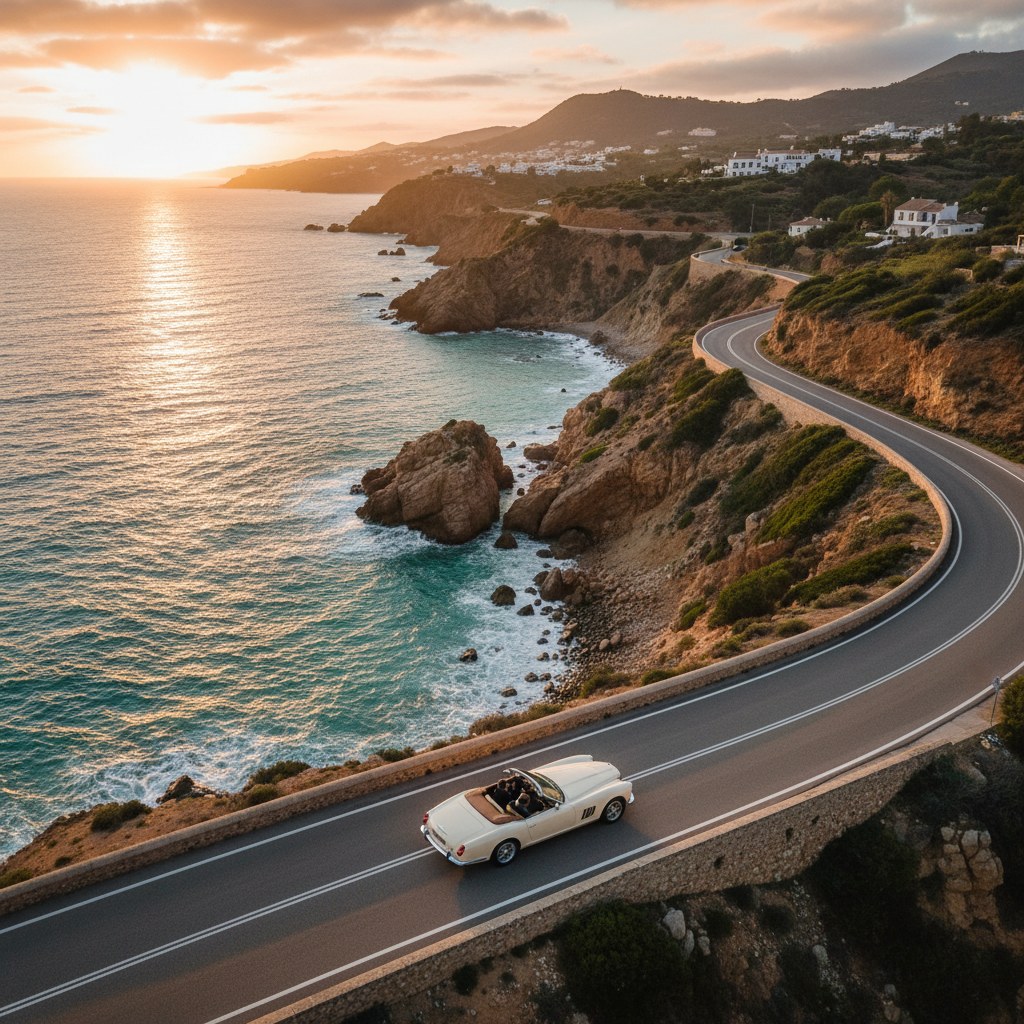 This scenic coastal drive takes you east along the Costa del Sol, passing through a succession of beach towns before reaching the dramatic cliffs of the Axarquía region. Unlike the motorway route, the older coastal road (N-340) offers sea views and access to lesser-known beaches and villages.