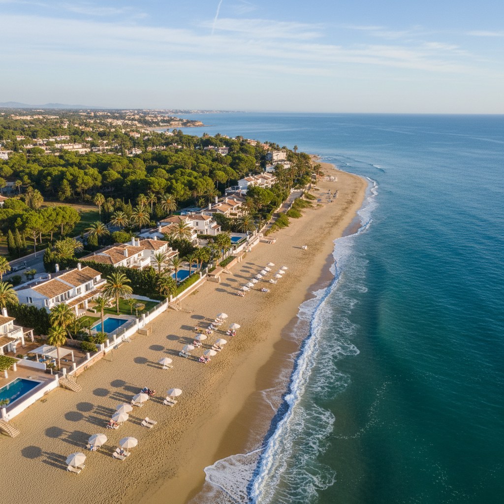 Marbesa sits quietly along the eastern stretch of Marbella’s coastline, a residential enclave where golden beaches meet Andalusian pines and the pace slows to something closer to the Mediterranean ideal. Positioned between Elviria and Cabopino, roughly 12 kilometres east of Marbella’s centre, this area has long attracted those seeking beachfront tranquility without sacrificing access to the Costa del Sol’s infrastructure. The neighbourhood unfolds along the N-340 coastal road and extends down to a stretch of sand that remains relatively uncrowded even in high season.