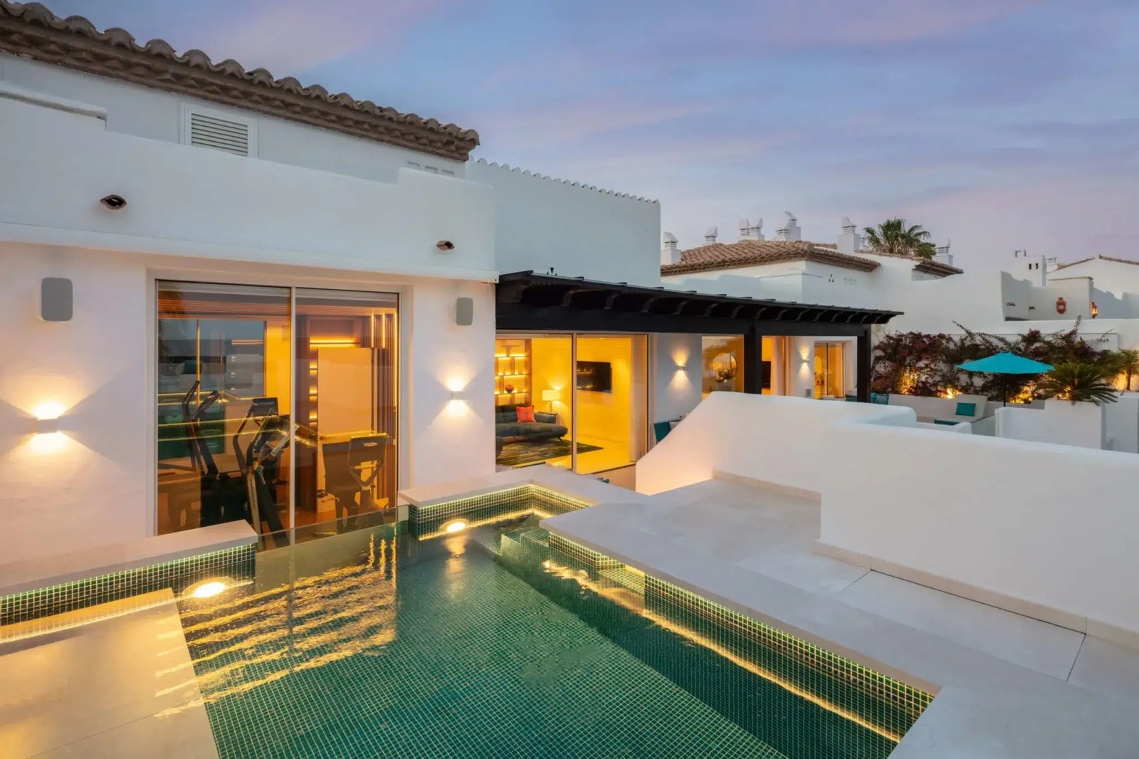 Beyond the in-villa amenities, Penthouse One guests have access to Puente Romano’s Six Senses Spa, one of the most comprehensive wellness facilities on the Costa del Sol. The spa offers everything from traditional massages to advanced biohacking treatments, plus an extensive fitness program including yoga, Pilates, and personal training sessions.