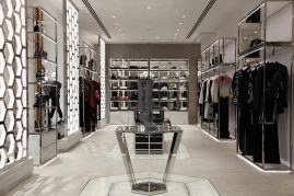 The boulevard’s western end showcases the Italian powerhouses: Gucci occupies a corner position with floor-to-ceiling windows displaying seasonal collections, while Dolce & Gabbana commands an entire building with their signature baroque aesthetic translated into architectural form. Versace and Roberto Cavalli anchor adjacent spaces, their interiors reflecting each house’s distinct design philosophy — Versace’s neoclassical opulence versus Cavalli’s bohemian maximalism.