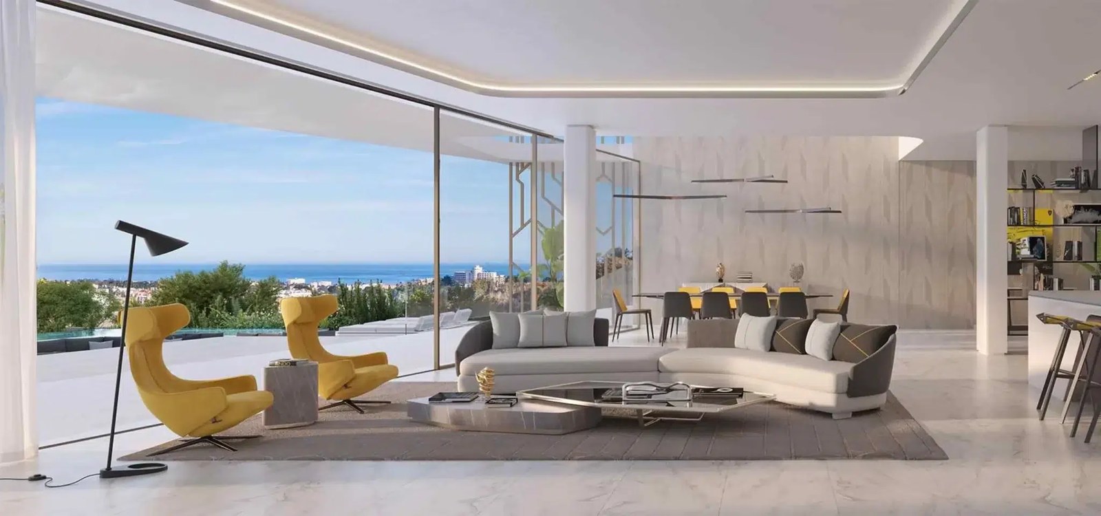 - Marble flooring: Large-format stone throughout interiors, with heated floors in bathrooms and selected living areas.
